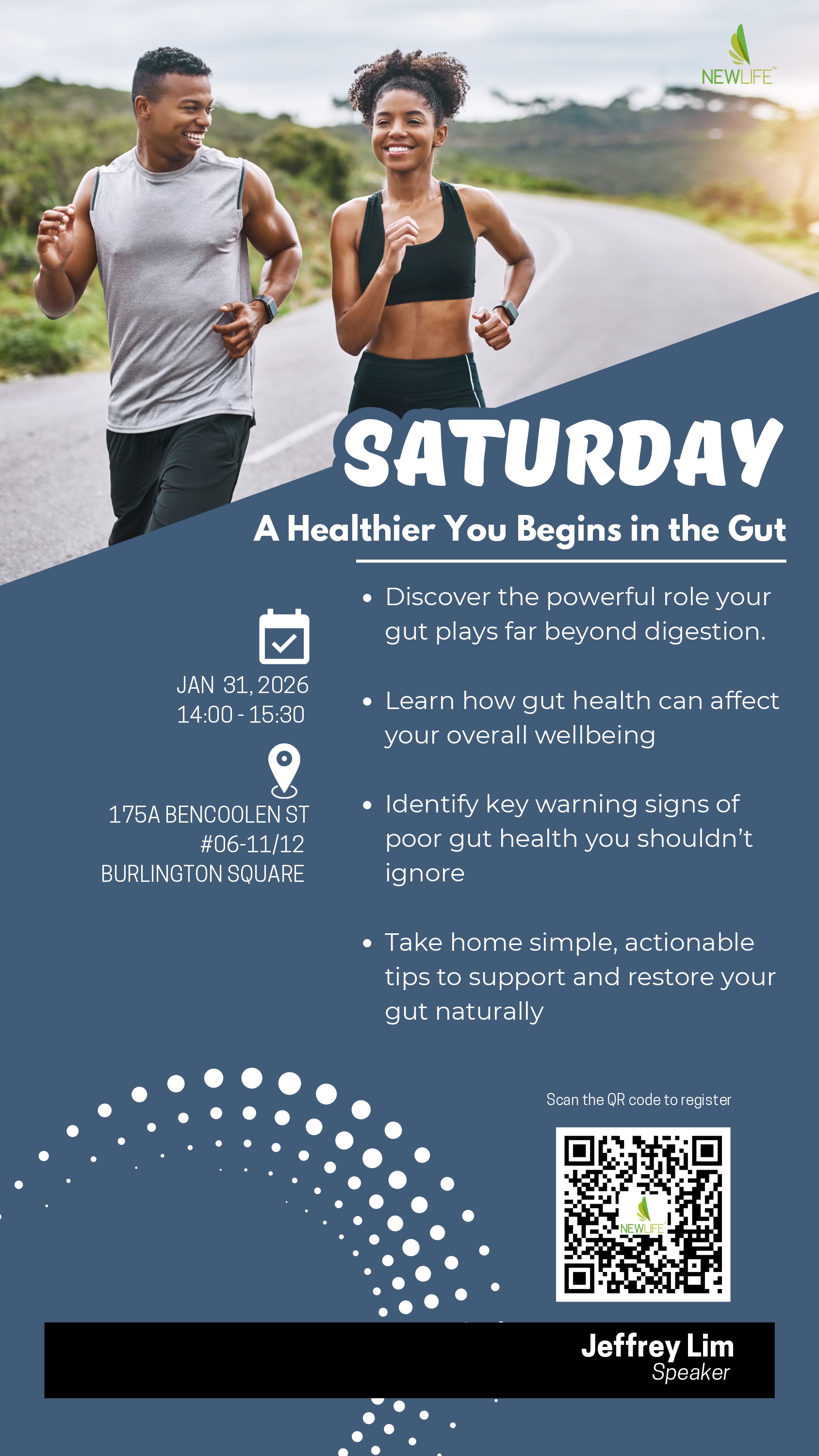Organizer NewLife™ Singapore Phone +65 6337 8819 Email info@newlife.com.sg Website https://newlife.my/ Speaker Manager Team Manager Team Location NewLife™ Singapore 175A Bencoolen Street, #06-11/12, Burlington Square, Singapore 189650 More Info Register Now Date Jan 31 2026 Expired! Time 2:00 pm - 3:30 pm Labels Singapore A Healthier You Begins in the Gut